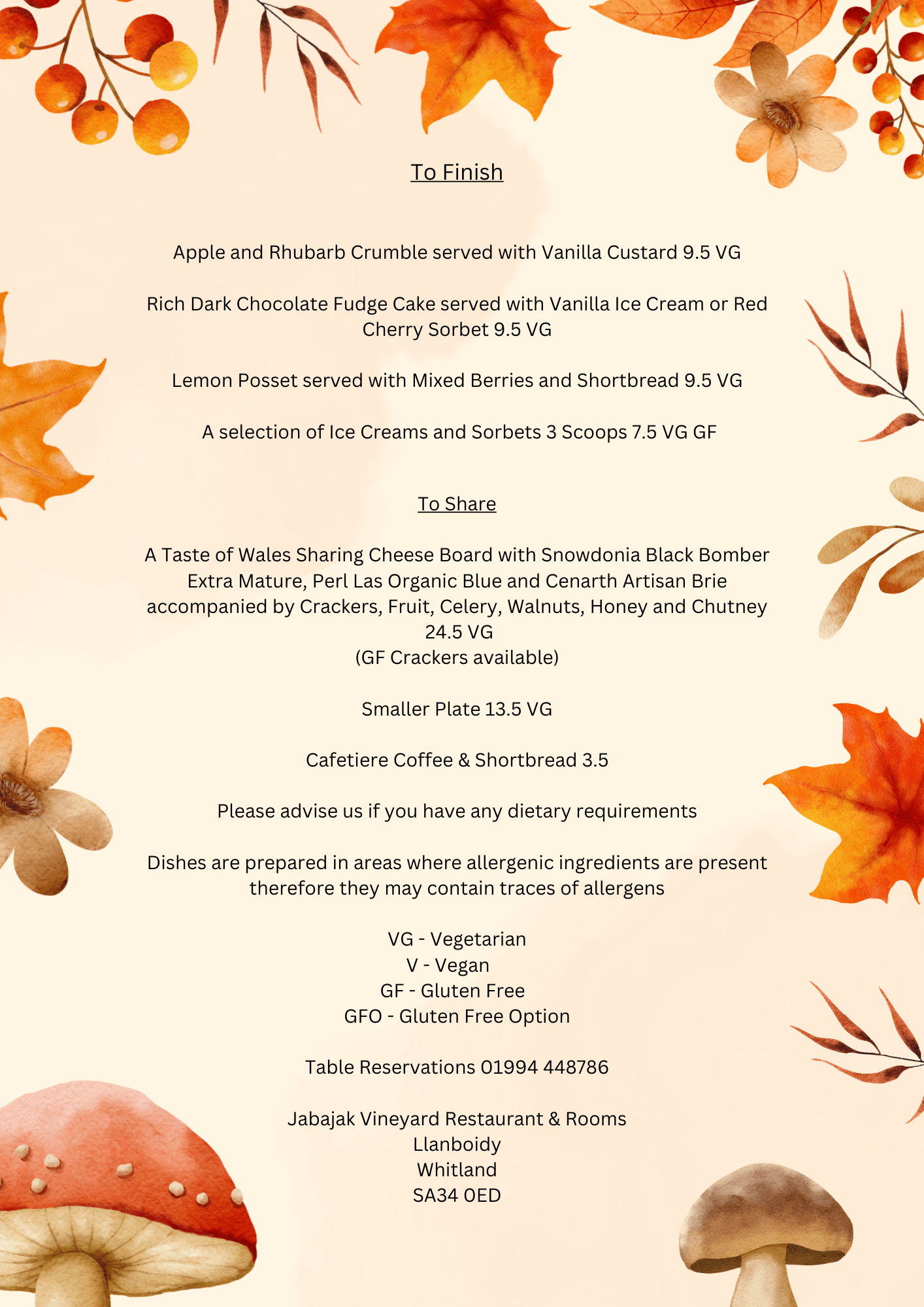 Fore more details, please give Steve or Jackie a call on 01994 448786